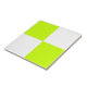 Diese Keramik-Kachel weist ein modernes kariertes Muster auf, das hellgelb und weiß ist. Die Farben sind im Designer-Tool anpassbar.