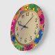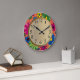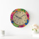 Gelbgelbe PInk handgezogene Blume Orangefarbenes K Große Wanduhr