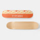 Mit unserem Orange And Yellow Retro Modern Abstrakt Marble Swirl Skateboard im Skate Park! Dieses auffällige Design mit wirbelnden Mustern in Orange und Gelb, inspiriert durch Retro und moderne abstrakte Kunst. Ideal für Skateboarder, die einzigartige und künstlerische Designs Liebe, kombiniert dieses Board Stil und Funktionalität. Dieses aus hochwertigen Materialien gefertigte Skateboarddeck bietet Langlebigkeit und eine reibungslose Fahrt. Personalisieren Sie es mit Ihrem Namen für eine besondere Touch. Mit diesem dynamischen und künstlerischen Skateboard steigern Sie Ihre Skateboarderfahrung.