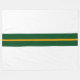 Dieses sportliche Design zeichnet sich durch waldgrüne und goldgelbe schlanke Rennstreifen vor einem hellweißen Hintergrund aus.