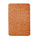 Nahtlos wiederholendes Muster mit stilisierten goldgelben Blattrebenmotiven vor einem reichen Terrakotta-Rot im Hintergrund.