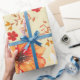 Gelb-orangefarbenes, blumengeschmücktes Papier mit hübschen Wildblume-Wiesen-Details mit eleganten Wildwasserfarbe Boho Blume, ideal für Frühling, Herbst oder Herbst Geschenkverpackung.