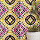 Diese dekorative Keramik Kachel ist ein atemberaubendes Kunstwerk, das jedem Zimmer eine Touch Eleganz verleiht. Das komplexe geometrische Muster ist symmetrisch und weist eine lebendige Kombination aus Gelb, Schwarz, Weiß und Rosa auf. Die glänzende Oberfläche und der weiße Rand verleihen der Kachel ein raffiniertes Aussehen, während die Formen von Dreiecken, Diamanten und Kreisen ein visuell faszinierendes Design schaffen. Diese Kachel ist ideal, um jedem Raum einen Pop von Farbe und Interesse hinzuzufügen.