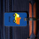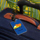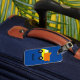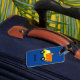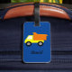 Niedlicher Cartoon-Spielzeug-LKW. Benutzerdefinierte Gepäckanhänger. Blauer Hintergrund. Ändern Sie den Namen, um diese Gepäckanhänger personalisiert zu machen. Geschenkidee für Kinder.