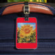 Eine herrliche Explosion einer Sonnenblume ziert diesen fantastischen Gepäckumbau von einem ursprünglichen Watercolor durch bekannten Künstler Lisa Madenspacher. Es ist auch die perfekte Geldbeutelverzierung oder -zusatz zu einer Schlüsselkette. Nehmen Sie entlang einem Stück von hübschem und von glücklichem, wohin Sie reisen.