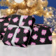 Adorable Geld Box gemusterte Packpapier. Niedliche, rosa Sparschweine gemustert auf schwarzem Hintergrund. Ideal für Buchhalter, Finanziers und Bankangestellte.