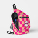 Geprüfter pfirsichfarbener, rosa geometrischer Retro-Monogramm-Sling-Beutel. Coole Mode Accessoires Tasche für jedermann. Cooles geometrisches rechteckiges Muster in Retro. Vintag gefliester Pfirsich und heißrosa modernes Schachbrett. Erstellen Sie eine einzigartige und personalisierte Tasche mit einer benutzerdefinierten Touch! Modernes Monogramm mit Ihrem Initial und Ihrem Namen für diesen persönlichen Flair.