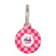 Checked peach hot pink geometric Retro Monogram Pet ID tag. Geschenkte Quadrate geometrisches Retromuster Geschenk für Hunde. Cooles geometrisches rechteckiges Muster in Retro. Vintage Fliesen pfirsichrosa modernes Schachbrett. Personalisieren Sie Ihre persönlichen Daten mit dem Namen und den Kontaktinformationen Ihres Haustiers.