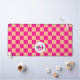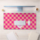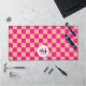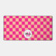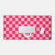 Geprüfte pfirsichfarbene, rosa geometrische Retro-Monogramm-Desk Mat. Einzigartige coole Schreibtischmatte für Büro, Zimmer, Arbeit, Werkstatt, Spielzimmer... Kegelförmige Quadrate heißen rosa geometrische Retromuster Geschenk für sie. Cooles geometrisches rechteckiges Muster in Retro. Vintages Fliesen modernes Schachbrett Design. Personalisieren Sie Ihre individuelle Eingabe und Ihren eigenen Namen.