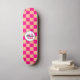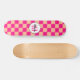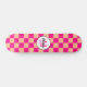 Geprüft pfirsichfarbenes, rosa geometrisches Retro Monogram Skateboard. Personalisieren Sie Sportgeräte mit Ihrem persönlichen Initial und Namen. Cooles Retro-Schachbrett geometrisches quadratisches Muster.