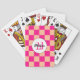 Checked peach hot pink geometric Retro Monogram Playing Cards. Personalisieren Sie Kartenspiele mit Ihrem eigenen Initial und Namen. Cooles Retro-Schachbrett geometrisches quadratisches Muster.