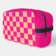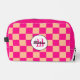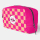 Geprüft pfirsichfarbenes, rosa geometrisches Retro Monogram Dopp Kit. Cooles Mode-Accessoire Kosmetiktüte für Mädchen. Cooles geometrisches rechteckiges Muster in Retro. Vintage Kacheln heiß rosa und pfirsichfarbenes modernes Schachbrett. Erstellen Sie eine einzigartige und personalisierte Tasche mit einer benutzerdefinierten Touch! Modernes Monogramm mit Ihrem Initial und Ihrem Namen für diesen persönlichen Flair.