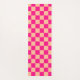 Geleichte pfirsichfarbene geometrische Retro-Monogramm Yoga Mat. Personalisieren Sie Ihre individuelle Eingabe und Ihren eigenen Namen. Cooles, hintergrundgezogenes geometrisches Quadratmuster. Vintages Kacheln heiß rosa modernes Schachbrett.