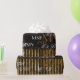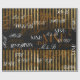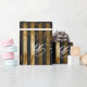 Ein denkwürdiges Muster gemacht mit ihren Anfangs-buchstaben wiederholt auf einem schwarzen und goldenen gestreiften Hintergrund