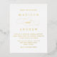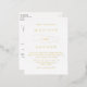 Einfache und elegante Hochzeitseinladung Postkarte mit Ihren Namen und Hochzeitsdetails, die in Goldfolienschrift mit Kalligraphie-Schriftzeichen dargestellt sind. Die Rückseite der Goldfolie Hochzeitseinladung Postkarte zeigt Ihre Rücksendeadresse, UAWG und Hochzeitswebsite. Das Design koordiniert mit unserer geliebten Hochzeitskollektion.