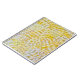 Gelli druckt abstrakte Kunstschablone in Gelb mit Touchs von lila. Dieses Design wurde mit der Gelli-Platte-Technik erstellt. Kunst und Fotografie von Sandra Foster Designs ©.