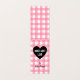 Gefalteter Fallumbau mit einem reizend rosa Ginghammuster für handgemachte Waren. Auf der Abdeckung hergestellt mit Liebe wird mit einem Markierungs-Schriftart innerhalb eines schwarzen Herzens geschrieben und Ihren Namen oder Namen des Geschäfts hinzufügt! Innerhalb, können Sie Ihre Kontaktinformationen schreiben sowie Sorgfaltanweisungen - oder Beiträge listen Sie auf - zu dem handgemachten Einzelteil.