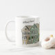 Handgezeichnet Kaffee-Tasse mit einer Illustration der bemalten Ladys, die dekorierten Viktorianischen Zuhause auf dem Alamo Platz, San Francisco. Originelle Kunst und Design von Annie Montgomery Design.