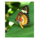 Die gemalte Schmetterlingsfrau hält in ihrem skurrilen Tanz an, um auf einem Blatt zu steigen.