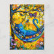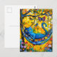 Gemalte Katze in Hängematte unter Bäumen mit Schme Postkarte
