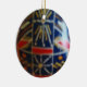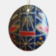 Handgemaltes Ei. Ausgezeichnetes Detail im Stil der Rumäne-Ostereientwürfe. Rottöne, Blues und Gelbs auf einem tiefen blauen Hintergrund.