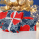GEMALTETES ROTES HERZ AUF BLAUEM HINTERGRUNDGESCHE GESCHENKPAPIER