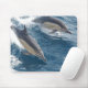 Dieses ist eine Fotografie des Herausspringens mit zwei gemeinen Delphinen des Wassers.