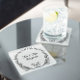 Untersetzer - ein Geschenk für verheiratete Paare, frisch vermählte Paare und Hausmädchen. Das Zitat, das Blatt- und das Liebe-Herz bilden einen Kranztyp um den verheirateten Namen des Paares herum, und Sie können auch das letzte Jahr hinzufügen. Das Zitat lautet: "Gemeinsam haben sie ein Leben aufgebaut, das sie liebten".