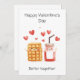 Genau wie Waffeln und Ahornsirup sind auch einige Dinge einfach nur dazu gedacht! Diese bezaubernde Valentinenkarte verfügt über eine glückliche Waffel und eine lächelnde Flasche Sirup, die zeigt, dass wahre Liebe (und Frühstück) das perfekte Spiel ist. Ideal für den Valentinstag, Jubiläen oder nur um jemanden zum Lächeln zu bringen!