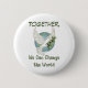 Trage deine Nachricht! Teilen Sie Ihre Mission. Dieser Knopf "Gemeinsam für den Frieden" weist eine strahlende weiße Taube mit einem Olivenzweig auf, die über einen dynamischen Globus hinaufsteigt - ein zeitloses Symbol für Frieden, Einheit und globale Hoffnung.