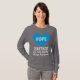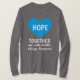 Dies ist ein niedlicher, lang Ärmeliger inspirierender T - Shirt für Frauen mit einem niedlichen, blauen Herzdesign mit dem Wort "HOPE" in großen weißen Buchstaben innen und dem Sprichwort "GEMEINSAM können wir Dinge geschehen lassen!"