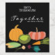 Feiern Sie Familie und Erntedank mit diesem "Together We are Family"-Flaschenlabel mit einfachen Gemüseschildern auf schwarzem Hintergrund. Zusammen machen wir eine Familie und Happy Halloween gedruckt in Weiß. Machen Sie Ihren Erntedank-Tisch mit Weinflaschen mit einem schönen Etikett ganz besonders.