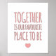 "Gemeinsam ist unser Lieblingsort zu sein" - ein wunderschönes, skurriles Zitat in hübsch rosa Farbe. Dieses Poster wird ein großartiges Geschenk für Familie oder Freunde. Perfekt für Muttertag oder würde niedlich in einem Kinderzimmer aussehen. Warum nicht einen Rahmen hinzufügen, um sofort stilvolle und erschwingliche Wandkunst zu erstellen. Beachten Sie, dass Sie mit den "angepassten" Kontrollen den Hintergrund so anpassen können, dass er eine beliebige Farbe hat (der Designer empfiehlt sehr helle Rosatönen, um diese Farbe zu verwenden) oder Ihr eigenes Foto als Hintergrund hochladen können - der Zitat-Hintergrund ist durchsichtig! Beachten Sie, dass Sie die Poster-Größe auf größer oder kleiner ändern können, wenn Sie eine andere Größe bevorzugen, ohne Qualitätsverlust zu haben - behalt sie etwa im gleichen Verhältnis zu 8x10 Zoll, zum Beispiel, um sie auf 16x20 Zoll für ein größeres Poster zu ändern.