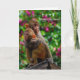 Eine einzigartige, zweisprachige Weihnachtskarte in Chinesisch und Englisch mit zwei niedlichen kleinen Makaken-Affen, die sich auf der Affeninsel in Sanya, Provinz Hainan, Süd-China umarmen.