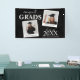 Modernes Banner für Doppel-Abschlussfeier mit 2 Fotos des Absolventen. Der Banner enthält Vorlagentext, der "GLÜCKWUNSCH GRADS, IHRE NAMEN, JAHR DES ABSCHLUSSES und IHREN SCHULE ODER UNI NAME" lautet. Alle Stile und Farben des Schriftartes können geändert werden, indem Sie nach der Personalisierung auf den entsprechenden Link klicken.