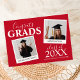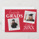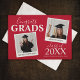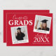 Moderne Doppel-Graduiertenparty mit 2 Fotos der Absolventen. Die Karte enthält einen Vorlagentext mit dem Text "GLÜCKWUNSCH GRADS, IHRE NAMEN, JAHR DES ABSCHLUSSES und IHREN SCHULE ODER UNI NAME". Mit einer stilvollen Einladung auf der Rückseite. Alle Stile und Hintergrundfarben des Schriftartes können durch einen Klick auf den Link nach der Personalisierung angepasst werden. *Bitte schreiben Sie mir, wenn Sie Hilfe benötigen.