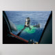 Ein Navy Frogman springt von einem Hubschrauber der Erholung ins Wasser, um den Einsatz der Gemini XII Erholung zu unterstützen.