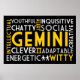 Mit Wörtern, die die Person beschreiben, die unter dem veränderlichen astrologischen Luftzeichen von Gemini im Zodiac geboren ist.