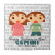 Dieses Gemini Happy Birthday Fliesen ist ein perfektes Geburtstagsgeschenk. Personalisieren Sie es mit dem Namen und Geburtsdatum des Kindes und es ist bereit zu gehen! Niedliche und moderne Illustration eines der 12 Sternzeichen.