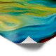A.I. hat aus einer grünen Vase eine Blume von Dahlia in leuchtenden Farben in Rot, Gelb und Orange hergestellt, das Set vor einem wirbelnden, lebendigen Hintergrund.