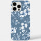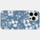 Das Bild zeigt eine wunderschön gestaltete Telefonzelle mit weißem Hintergrund und einem eleganten blühenden Muster. Die aufwändigen Blume und Blätter sind anmutig angeordnet, was dem Gehäuse einen zarten und künstlerischen Charme verleiht. Das Gehäuse mit zwei Kameraausschnitten in der oberen links Ecke ist elegant und funktionell zugleich. Der Kontrast zwischen der weichen weißen Basis und den detaillierten blauen Blumen-Designs schafft eine zeitlose Ästhetik, die Eleganz mit der von der Natur inspirierten Schönheit verbindet. Ein perfektes Accessoire für jemanden, der elegante und künstlerische Touchs in seinen Alltagsgegenständen Liebe!