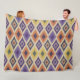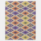 Dieses Design zeichnet sich durch ein gewagtes und farbenprächtiges geometrisches Muster aus, das durch traditionelle Stammesmotive inspiriert wird. Es zeigt sich in lebhaften Farbtönen wie lila, orange, grün und gelb wiederholt Diamantformen, wobei die Zackenzag-Details im Mittelpunkt jedes Diamanten stehen. Das Gesamtbild ist texturiert, gewebt, wodurch es eine dynamische und taktile Qualität erhält. Der Kontrast zwischen warmen und coolen Farbtönen schafft einen visuell auffälligen Effekt, der sich perfekt für eine gemütliche Fleecedecke eignet. Das Muster hat einen rhythmischen Fluss, der es sowohl auffällig als auch beruhigend macht.