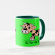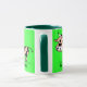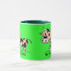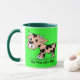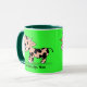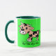 Gemusterte Cartoon-Kuh auf Grün mit MOO Tasse