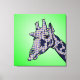 Ein lustiges Design für diejenigen, die afrikanische Safari themed Design Liebe. Dieser seltsame Giraffenkopf schaut von der Seite mit grünem Hintergrund rein. Die Giraffe hat eine blaue Raute auf der Haut und blaue Flecken.