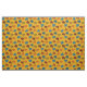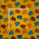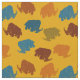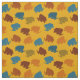 Mit diesem wolligen Mammut-gemusterten Stoff entwirft man etwas mit einem prähistorischen Flair. Dieses Material zeichnet sich durch ein überwältigendes Muster von Cartoon-Illustrationen von Wollmammotten in Orange, Bräune, Braun, Blau und Orange vor einem goldfarbenen Hintergrund aus.