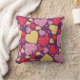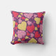 Dieses Kissen kennzeichnet einen lila Hintergrund mit den bunten gemusterten Herzen, die in eine Collage zerstreut werden.