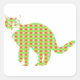 Eine Katze mit geometrischem Muster in blau, grün, gelb, orange und rot. Originelles Design.