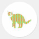 Eine Katze mit geometrischem Muster in blau, grün, gelb, orange und rot. Originelles Design.