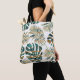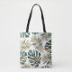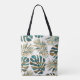 Aquamarine und goldene gemusterte tropische Blätter bürsten Pinselstriche auf die Tasche. Es zeigt gemusterte tropische Blätter mit Pinselstrichen in aquamarinem Blau und Gold und Konfetti. Sie können es anpassen und Ihre Bilder oder Grafiken hinzufügen.