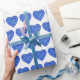 Aquarellmalerei von blauen Saphirherzen auf einem Musterverpackungspapier. Ideal für romantisches Saphirifting, Hochzeitsgeschenke aus dem 45. Saphir, Geschenke für die geborenen im September, die den Geburtstein des Saphir und andere blauen Saphirveranstaltungen haben. Original Aquarellkunst und Design von Sarah Trett für www.mylittleeden.com